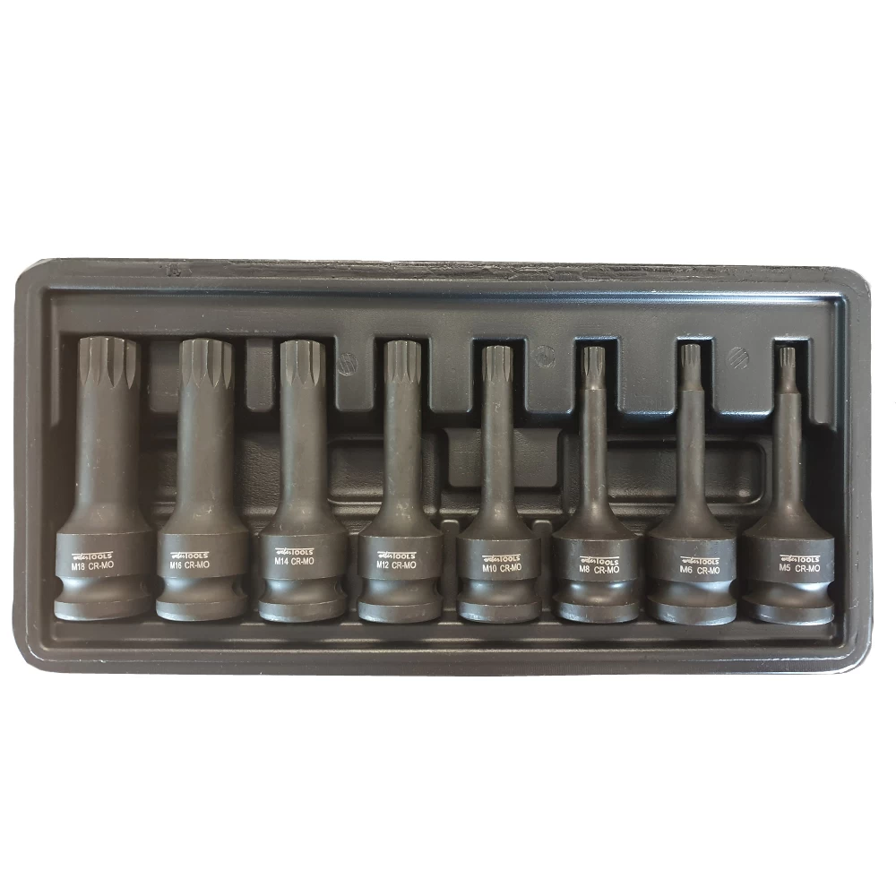 8-Delig veeltand krachtdoppen set van Chrome Molybdenum staal.