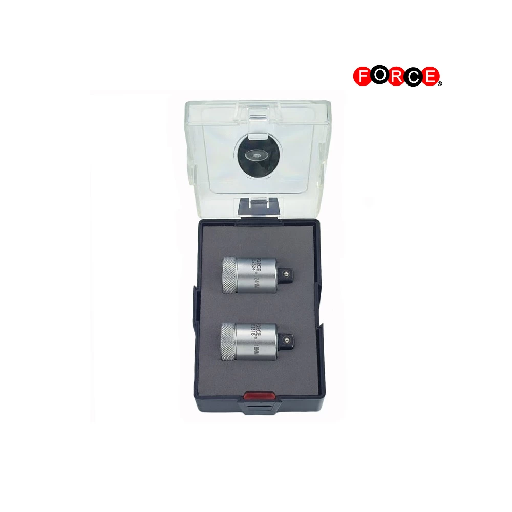 Set van 2 draaimomentbegrenzende adapters met ingebouwde maximumkoppel (18 – 24 Nm) voor gecontroleerd aandraaien van bougies.