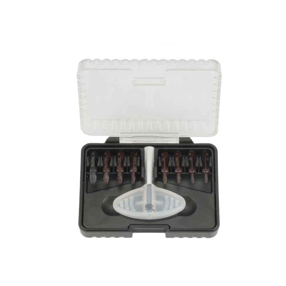 Verwijder eenvoudig kapot gedraaide schroeven met Torx, Torx Plus en Inbus. In geval van afgebroken bouten moet eerst een gat boren in het draadeind alvorens de bit te gebruiken. Dit set bevat 8 schroefverwijder bits van extra gehard S2-staal.