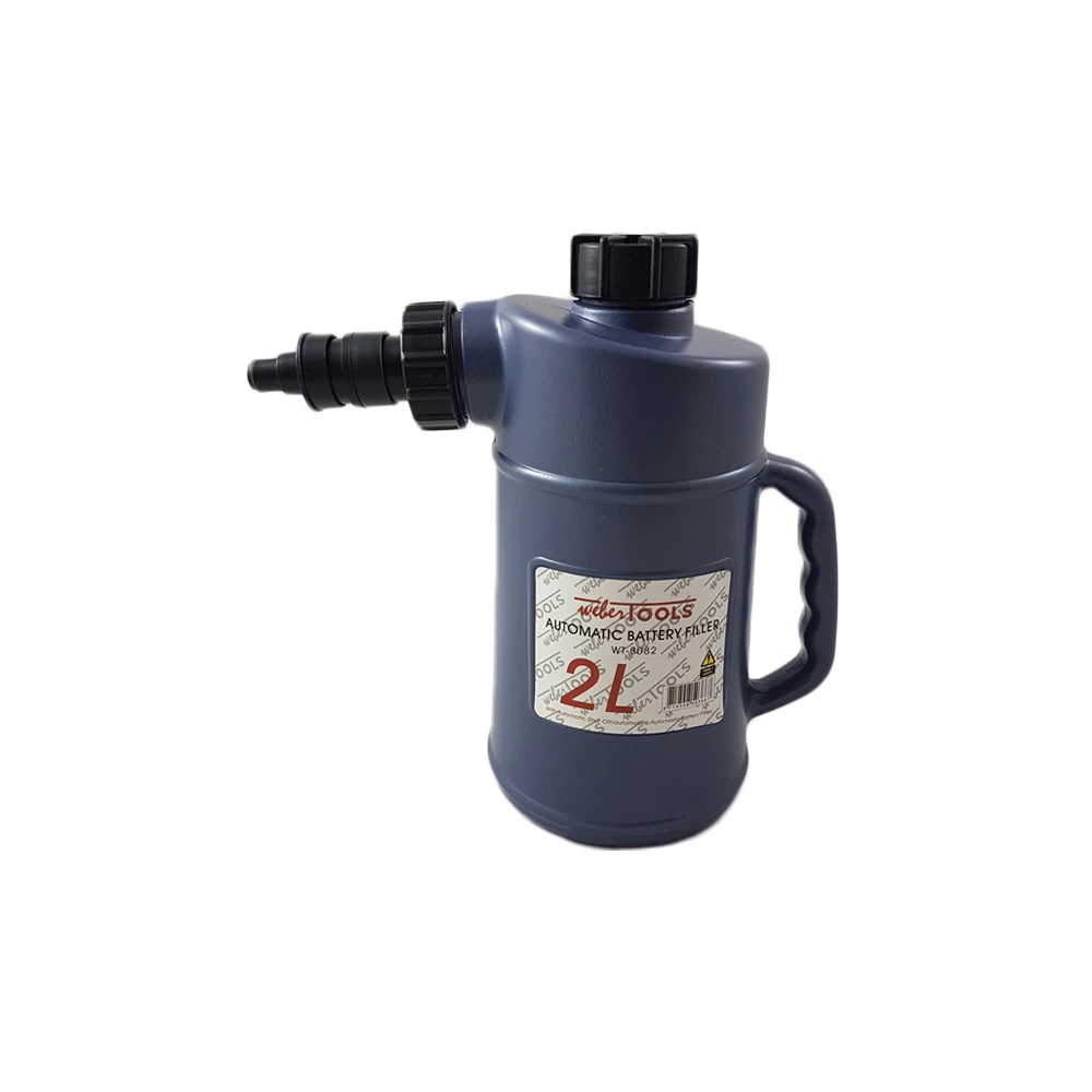 Voorzien van speciale drukdispenser/vuldop welke ervoor zorgt dat het vullen automatisch stopt wanneer de accucel gevuld is.