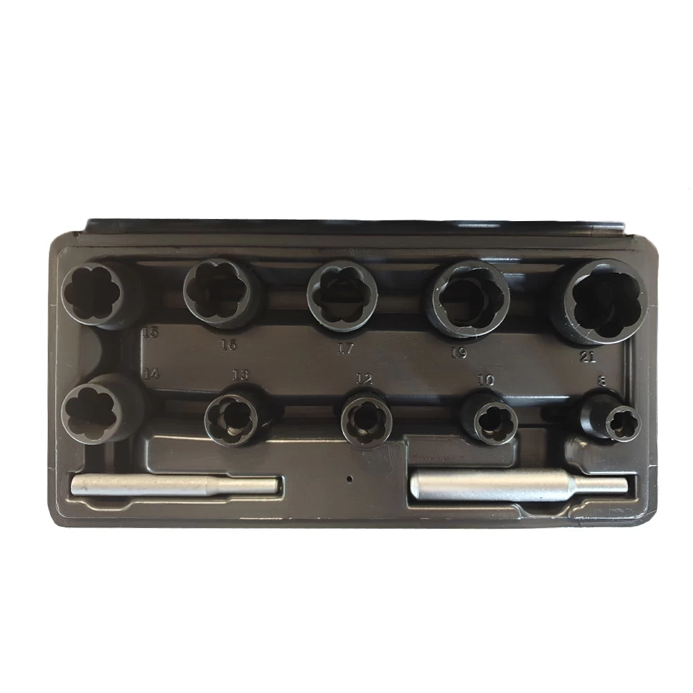 Door de bijzondere constructie van de doppen (conisch en speciaal links profiel) kunnen schroeven, moeren en bouten probleemloos los- en uitgedraaid worden.