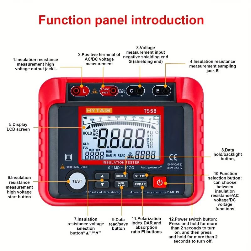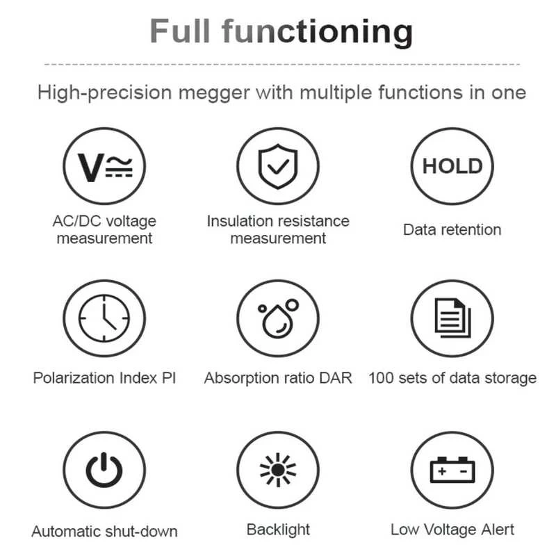 Digitale megger isolatieweerstandstester – multimeter met LCD-achtergrondverlichting voor aarding en ohm-testen