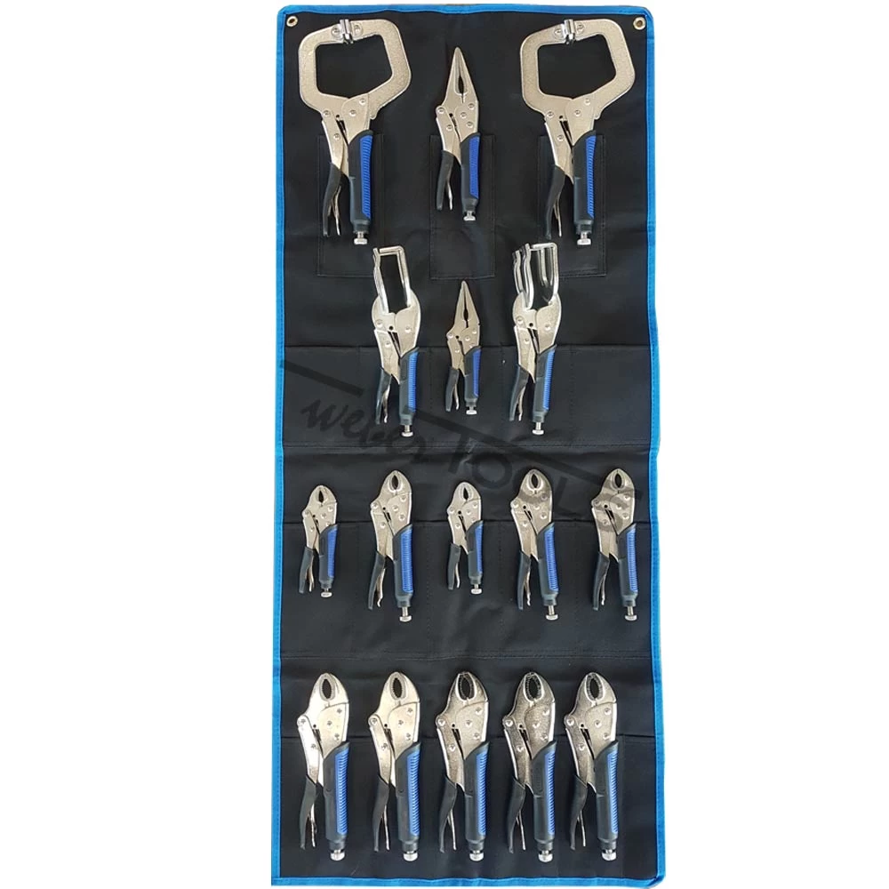16-Delige griptangen set van Weber-Tools. De tangen zijn traploos instelbaar en voorzien van een hendel voor snelle ontgrendeling. De handvat zorgt voor een optimale grip tijdens het werk. De set is voorzien van 10 griptangen, 2 lange bek griptangen, 2 C-griptangen en 2 Las-Griptangen.