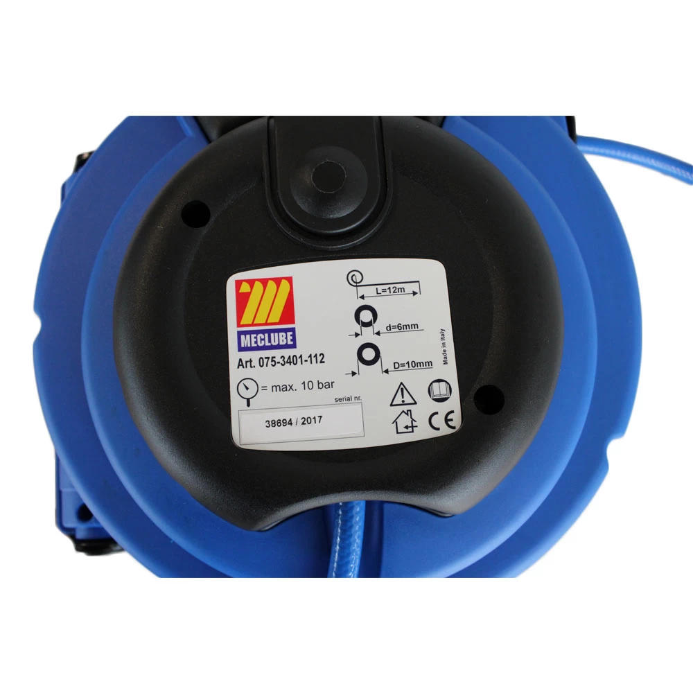 Lucht-waterslang haspel 12 meter met automatisch oprol systeem voorzien van rolstop.