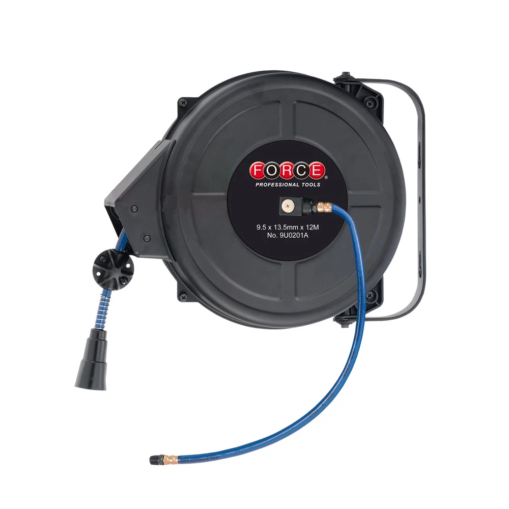 Automatische luchthaspel voor perslucht, met slanggeleiding 12 meter.