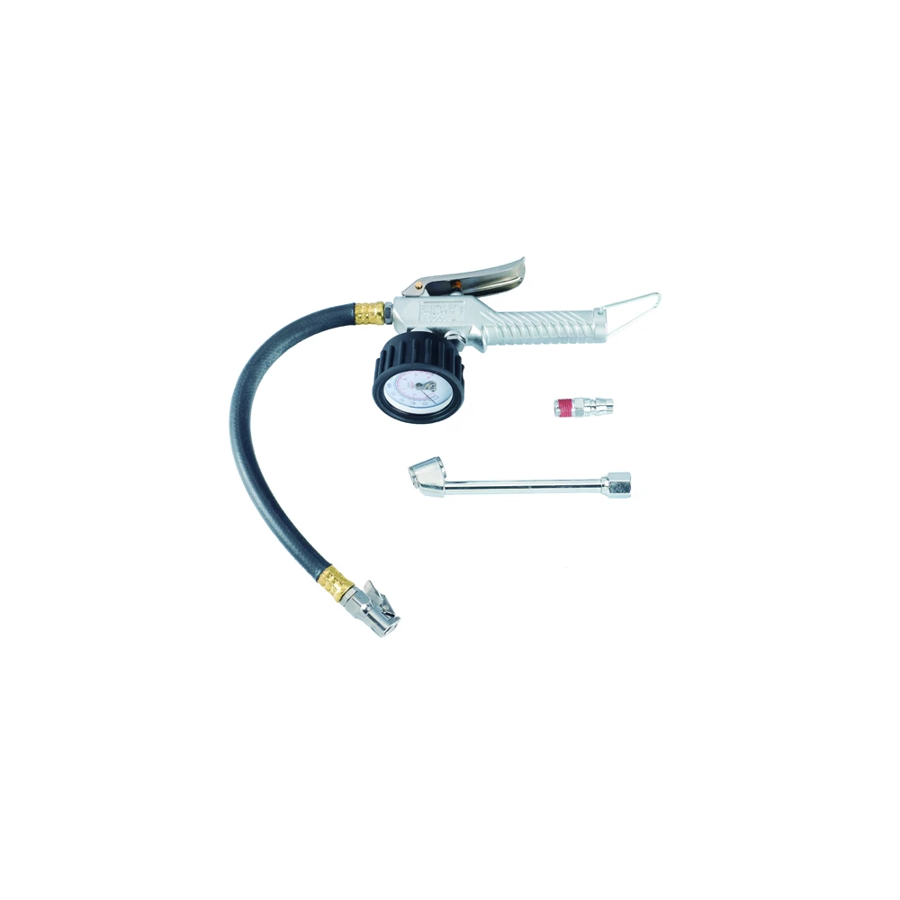Force bandenpomp, dat zowel geschikt is voor het meten van bandenspanning en het leeglaten of oppompen van banden. Laat onnodige druk los.