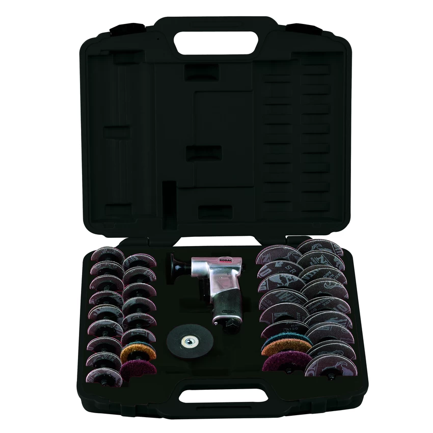 Wordt geleverd in een complete koffer met een uitgebreid assortiment schuurschijven.